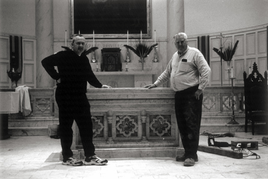 Father Bill Medley inspecting the work